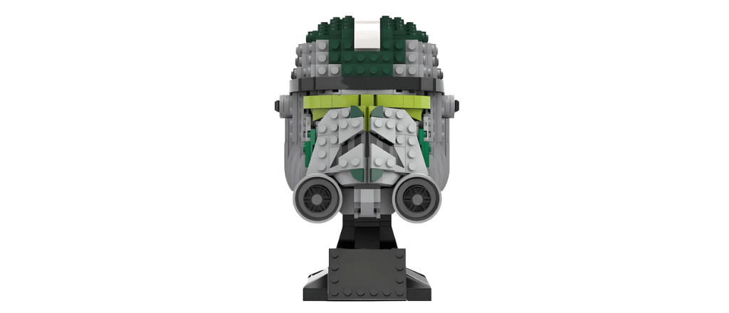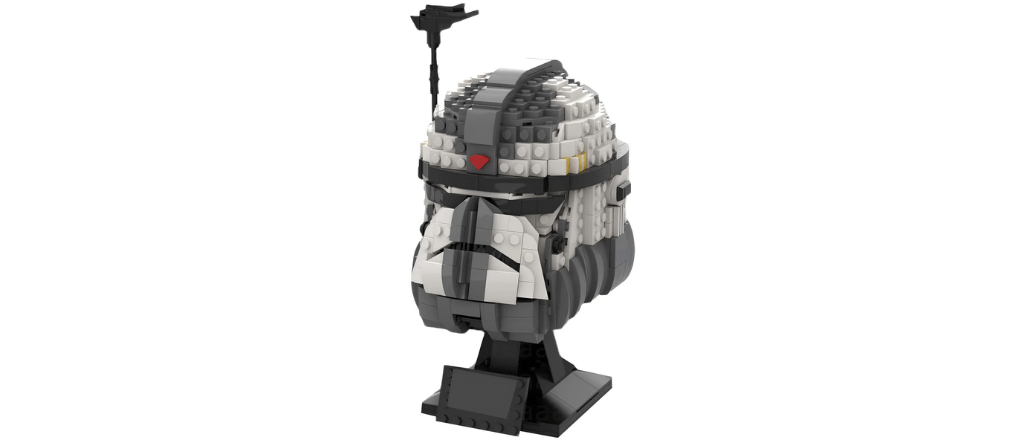 The most visually distinctive element of the ARF trooper’s appearance is unquestionably the helmet, which features a dramatically different profile from standard clone trooper headgear. The ARF helmet has an elongated, almost insectoid quality to it, with a visor design that prioritizes wide-angle visual coverage and integrates multiple sensory systems in a package that is immediately recognizable as specialized military equipment rather than standard-issue gear.